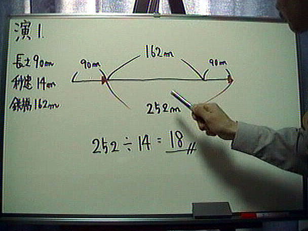 【超高速解法のヒント&コメント】 ・列車や電車など「速さ」を持つものが「長さ」を持つとき「通過算」となります。 ・単純に 162÷14 ではないので気をつけて下さい。 |