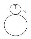 | 直径10cmの小円板Aが直径25cmの大円板Bの周りを滑らずに 回転しながら1周してもとの位置にもどったとき、小円板Aの矢印の 方向はどうなるか。※ただし、転がる前は「もとの位置」において 矢印は上↑を向いている。(EN-006) 1.↑ 2.← 3.→ 4.↓ 5.1〜4以外の方向 |