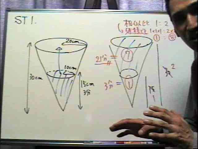 ★詳しい解答解説は、「超高速解法」DVDシリーズ 「NO.28 円錐の体積比」 をご覧下さい。