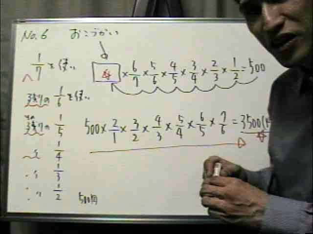 1/6を使い、またその残りの1/5、その残りの1/4、その残りの1/3