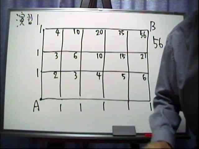 図のような碁盤目の道を、AからBまで最短経路を通っていく方法は何通りあるか。(EN-001)