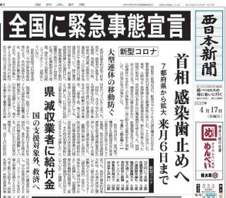 ※西日本新聞2020年4月17日朝刊1面より