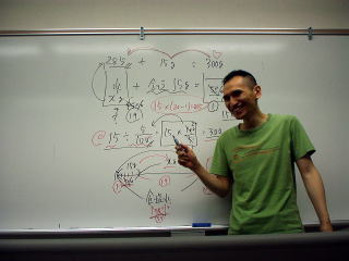 ![]() 数的推理/空間把握 ・天びん法の本当の意味 ・空間図形をイメージするコツ ・立方体を一刀両断する中華包丁 ・つるかめ算と方程式の関係 ・濃度の三用法の活用法 ・食塩水+第4の公式の秘密 ・見方を変えて高速化を図る 宙を舞う♪華麗な板書さばき!?笑 |