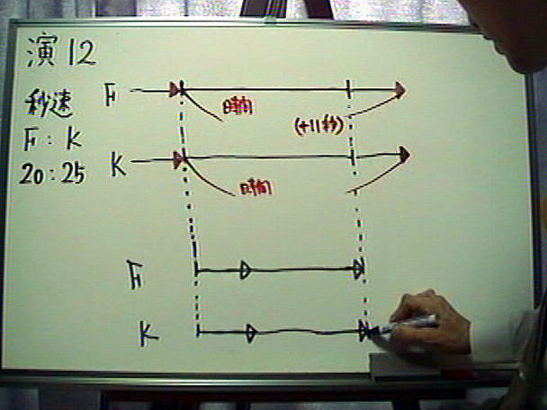 【超高速解法のヒント&コメント】 ・方程式は不要です。 ・通過算のよくでるパターンですが上級編です。列車の「ポジション」がイレギュラーな条件部分にも気をつけて下さい。 ・時間の「差」に注目すると「何か」が見えてきます。 |