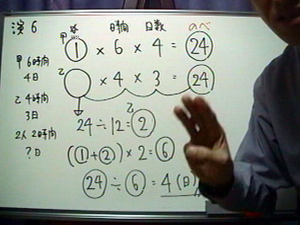 【超高速解法のヒント&コメント】 ・レベルAと同じほとんど同じ「構造」」ですが、1日あたりの時間の条件設定に注意です。 ・1人が1時間当たりに行う「仕事量」を@とおいて解いていく「のべ算」の典型パターンです。 |