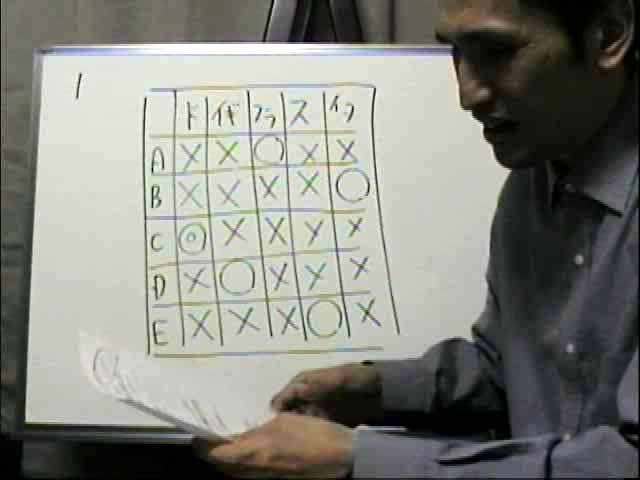 【超高速解法のヒント&コメント】 ・CかDである、ということは、ABEではない、ということ。 マトリックス表で解く典型です。 |